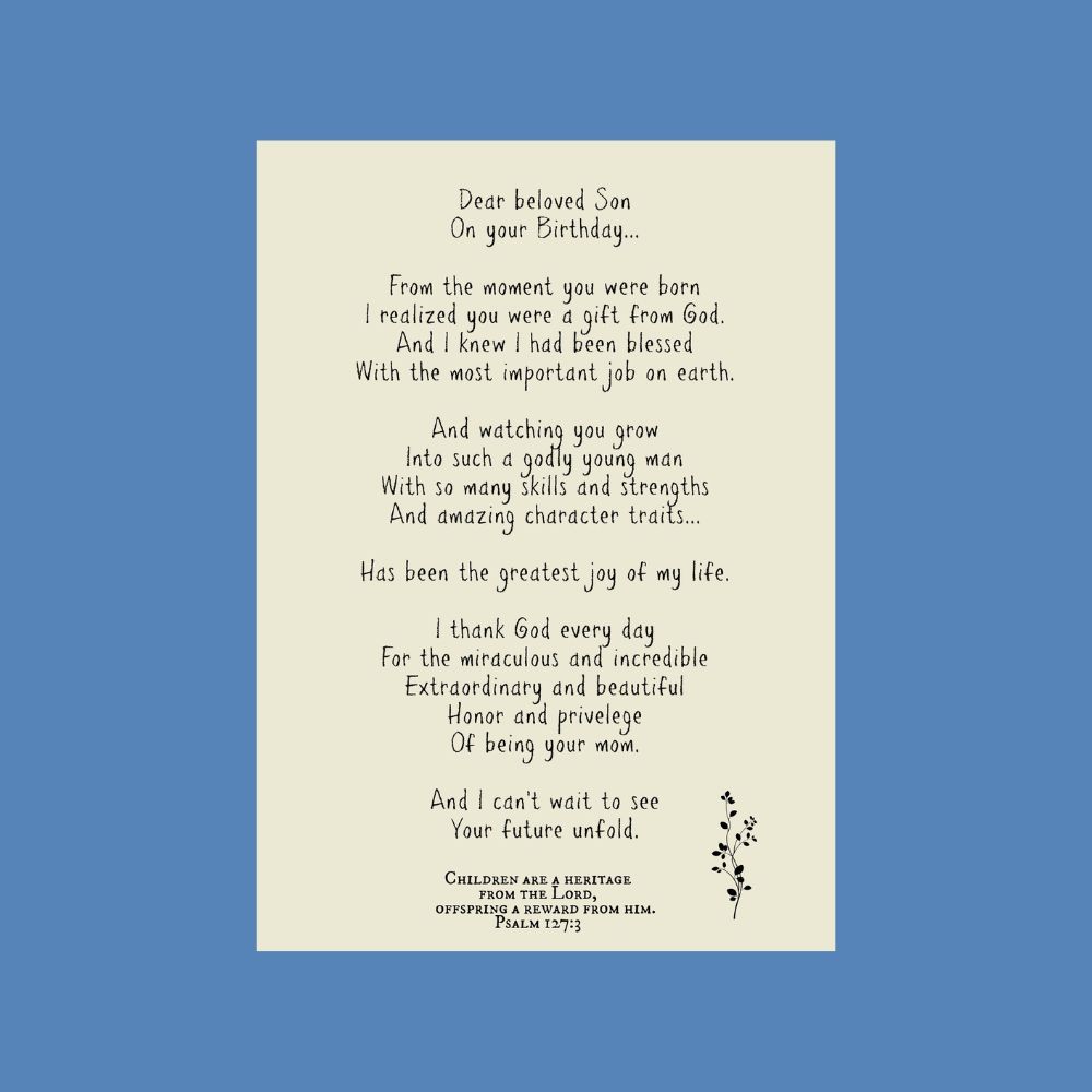 Share your joy in watching your son grow into a godly man and your excitement to see his future unfold!